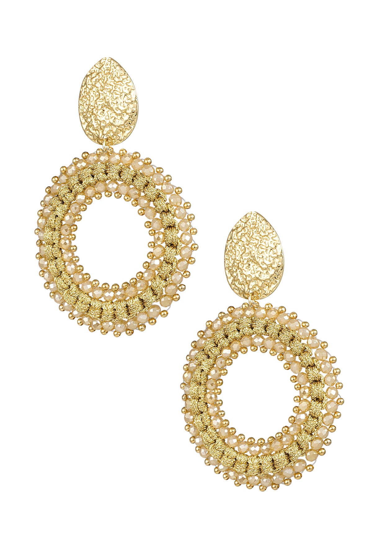 Oorbellen rond met kraaltjes - goud/beige