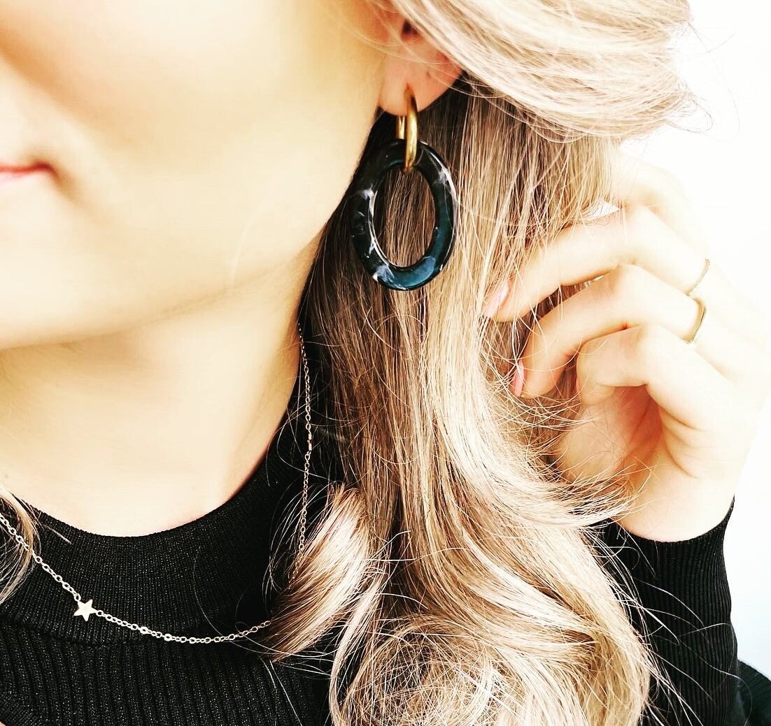 De oorbellen hebben een diameter van 20 mm en een dikte van 2 mm De oorbellen zijn van roestvrij staal (roestvrij staal, geen verkleuring) De epoxy hanger heeft de vorm van een druppel en is van hoge kwaliteit